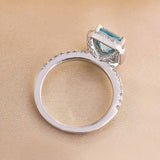 Louily 2 Ct Exclusive Halo Asscher Cut Light Aquamarine Blue Engagement Ring