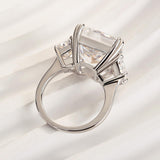 Louily Luxurious 12Ct Crushed Ice Hybrid Radiant Cut Three Stone Engagement Ring — show-stopping brilliance with ethical simulated diamonds and a premium sterling silver setting that delivers luxe sparkle without the premium price. Perfect for the modern couple who wants maximum impact and everyday wearability.