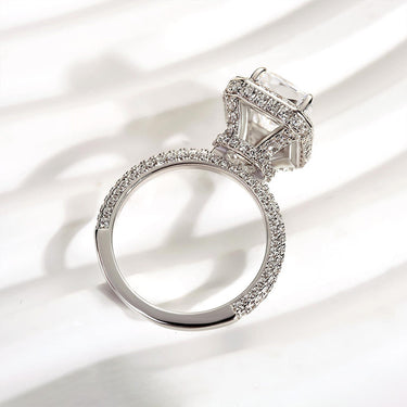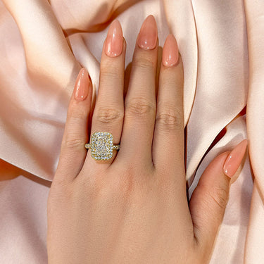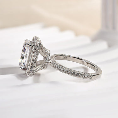 Louily Noble Halo Radiant Cut Engagement Ring — a radiant 3.5Ct simulated diamond centerpiece that delivers stunning, jewelry-store sparkle without the premium price. Perfect for the couple who wants classic elegance with modern, ethical value.