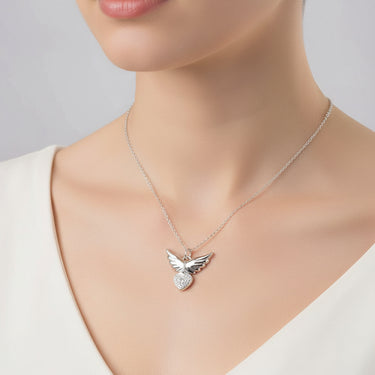 CapeGlow® Silver Celestial Wings Necklace — a timeless 925 sterling silver pendant that pairs everyday elegance with meaningful symbolism, letting you wear a reminder of lasting love and light.