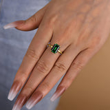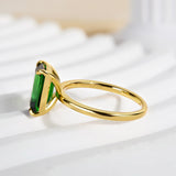 Louily Classic Yellow Gold Emerald Cut Engagement Ring in Sterling Silver — show-stopping emerald-green sparkle with a timeless solitaire silhouette. This ring pairs a dramatic 7x10mm emerald-cut simulated diamond with warm 18K yellow gold plating over 925 sterling silver for a high-impact look that stays comfortable and affordable.