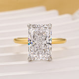 • Brilliant 5.0 Carat Radiant Cut: An 8×12 mm radiant-cut center stone offers exceptional fire and a modern rectangular silhouette that flatters every hand.