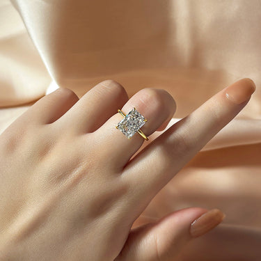 Louily Elegant Radiant Cut Engagement Ring — a dazzling 5.0ct simulated diamond ring that delivers the look of luxury with everyday comfort and ethical appeal. Perfect for couples who want a bold, brilliant centerpiece without the premium price of mined diamonds.