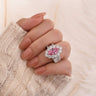 - Dazzling 3.0 Ct pink marquise center (14 x 7 mm): Bold, feminine color and elongating marquise shape that creates a flattering, finger-lengthening silhouette.